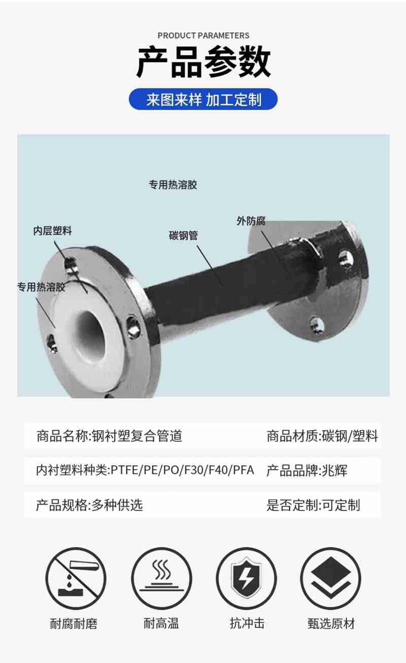 它被廣泛應(yīng)用于化工、電力、冶煉、制藥、食品、環(huán)保、電鍍等領(lǐng)域,可通過各種濃度的酸、堿、鹽等,是目前耐腐蝕性能好的防腐管道。